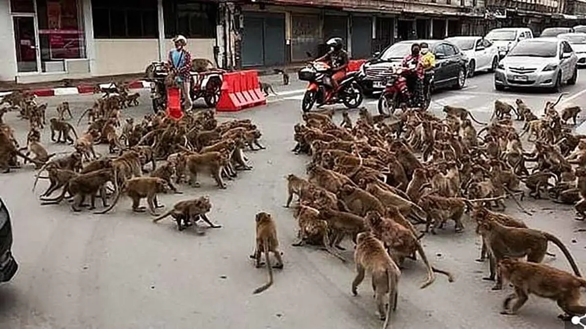 حوادث رکنا: فیلم درگیری میمون های شهر "لوپوری" تایلند سوژه رسانه های اجتماعی شد.