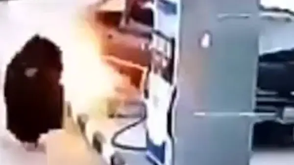 به گزارش رکنا، در یکی از کشورهای عرب زبان، زنی که سوار بر خودروی شاسی بلند بود، قصد خروج از جایگاه سوخت را داشت که با پمپ بنزین برخورد کرد. این اتفاق منجر به آتش سوزی در پمپ بنزین شد و یکی از افراد حاضر به سرعت برای اطفای حریق وارد عمل شد.