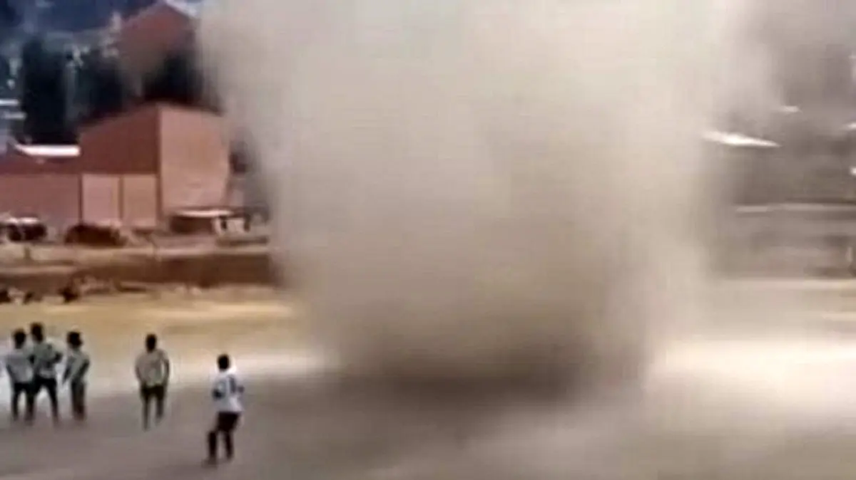 طوفان و گردباد عجیب در یک زمین فوتبال رخ داد.