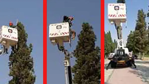 تیم آتش نشانان سریعا توسط بالابر در ارتفاع ۱۵ متری قرار گرفته و نسبت به انتقال حیوان به مکان امن اقدام نمودند.