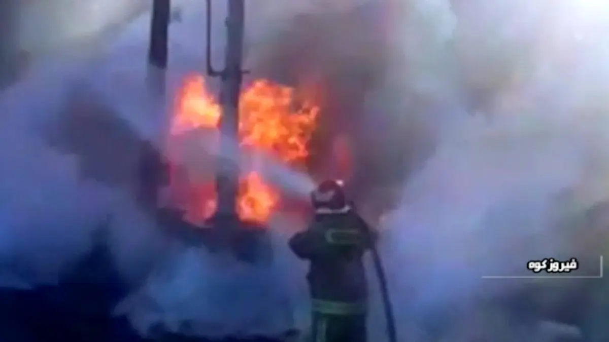 فیلم لحظه انفجار تریلر بنزین در فیروزکوه / همه وحشت کردند