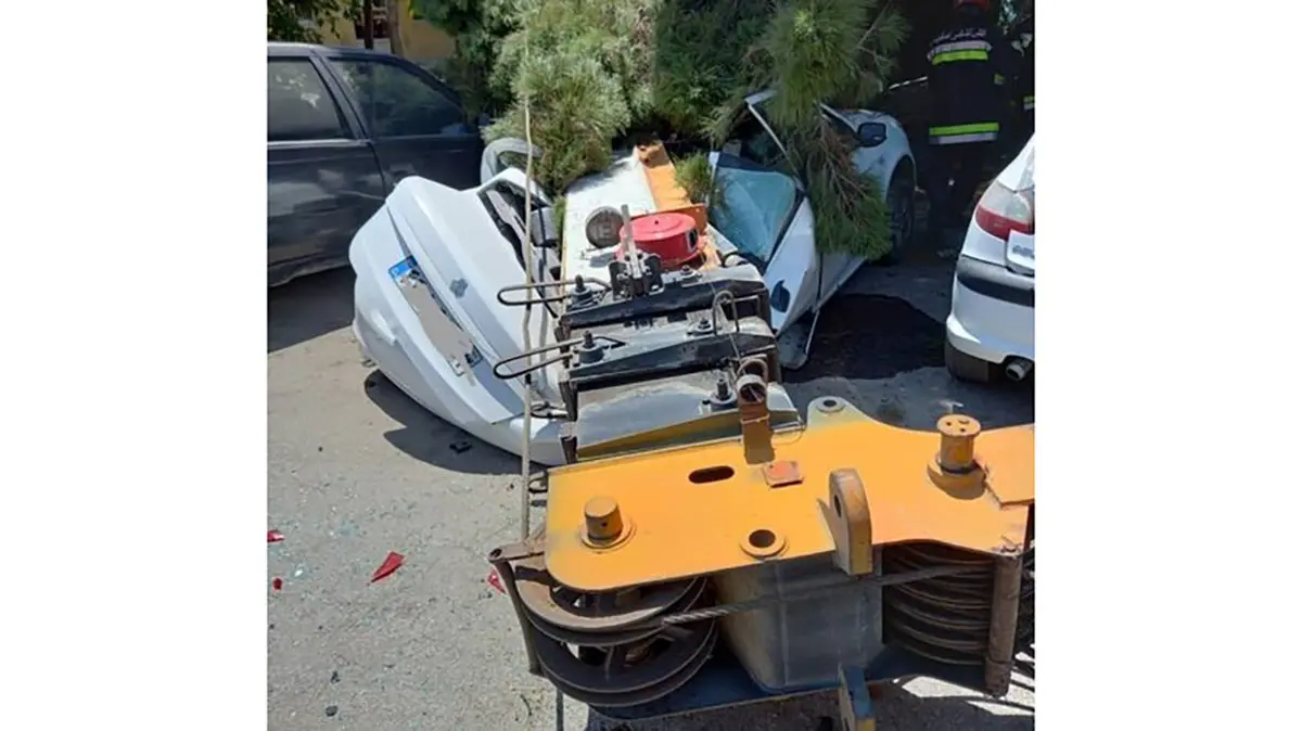 سقوط جرثقیل ماشین 3 اصفهانی را پرس کرد + عکس های له شده