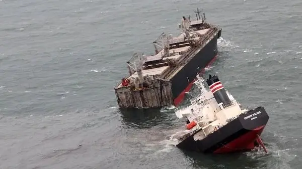 رکنا: کشتی پانامایی در سواحل ژاپن شکسته و حجم زیادی از نفت وارد شد.