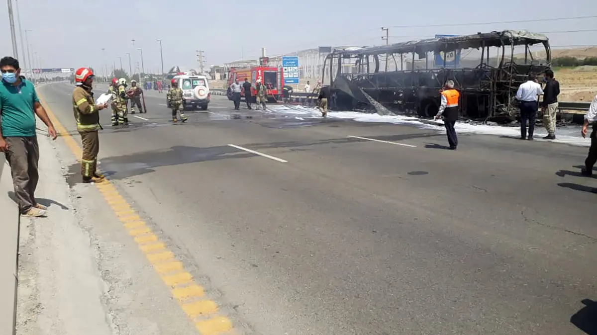 حوادث رکنا: اتوبوس مسافربری در آزادراه تهران - قم با 20 مسافر آتش گرفت.