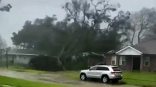 یک درخت بزرگ در ایالت «لوئیزیانا» آمریکا بر اثر وقوع طوفان آیدا از زمین کنده شد و بر روی یک منزل مسکونی افتاد.