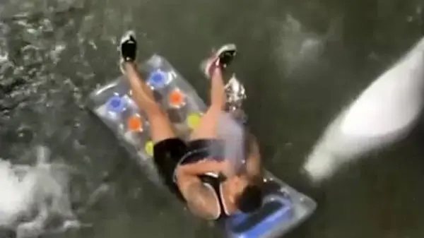 فیلم جنجالی قلیان کشی مردجوان شناور در سیل نیویورک !