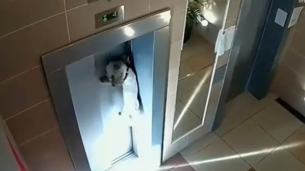 نجات یک سگ از مرگ بین در آسانسور + فیلم