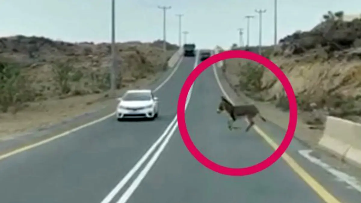 حوادث رکنا: یک الاغ هنگام عبور از عرض یک جاده به شدت با قسمت جلوی یک خودرو برخورد کرد و آسیب دید.