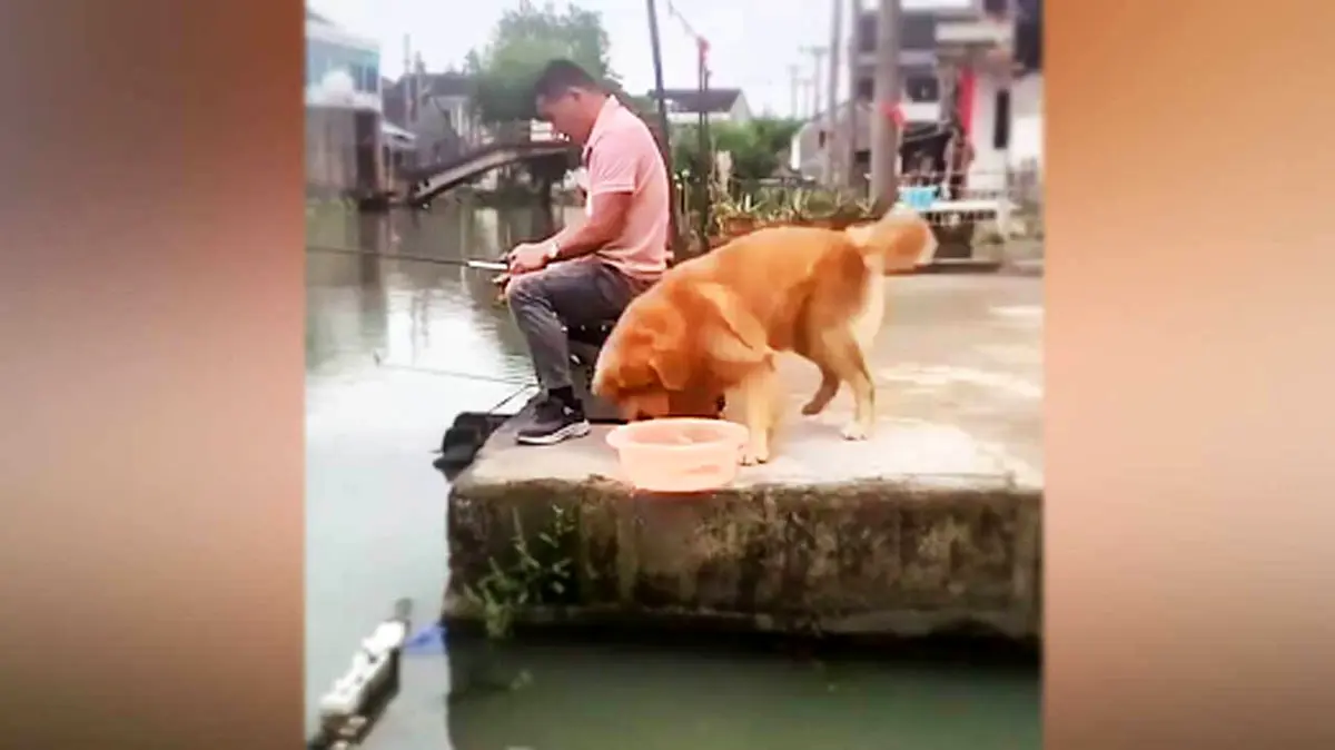 دلسوزی جالب سگ برای نجات ماهی از چنگ صیاد + فیلم