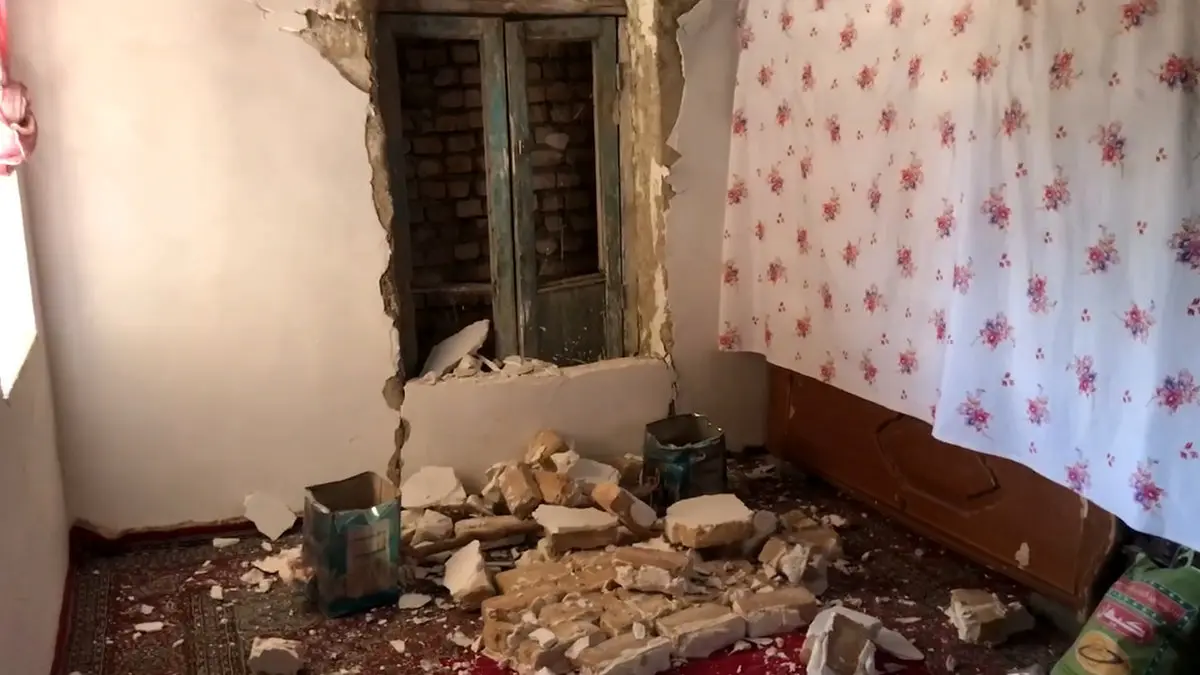 فیلم سقوط سنگ بزرگ روی یک خانه در زلزله قوچان