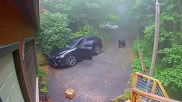 یک زن هنگام سوار شدن به ماشینش با یک خرس سیاه رو به رو شد.