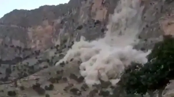 فیلم عجیب از ریزش کوه همزمان با زلزله در 2 استان ایران