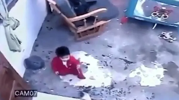 رکنا : سقوط کودک از بلندی به کمک یک گربه به خیر گذشت.