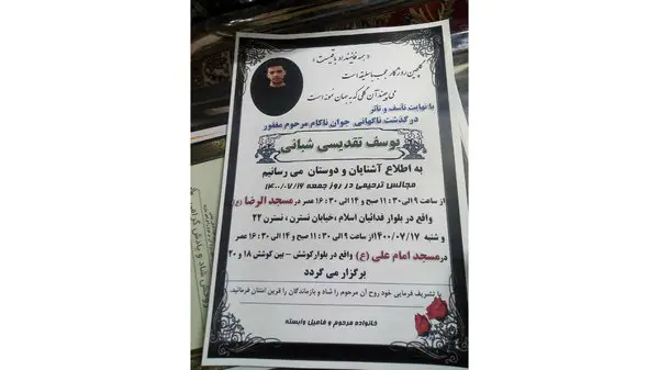ماموران اورژانس مشهد سریعا یوسف را که به کما رفته بود، جهت سیر مراحل درمانی به نزدیک ترین بیمارستان انتقال دادند. مراحل درمانی ادامه داشت تا اینکه روزگذشته پنجشنبه 15 مهرماه یوسف تقدیسی براثر ضربه مغزی که در این حادثه برایش بوجود آمده بود به کام مرگ فرو رفت.