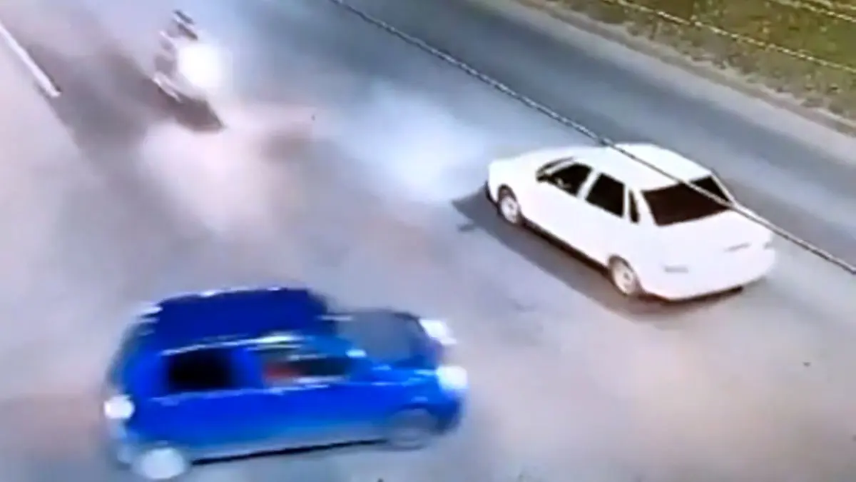 به گزارش رکنا، در تقاطعی در شهر چاباقسر روسیه، یک موتورسیکلت با سرعت زیاد به اتومبیلی که در حال گردش بود، برخورد کرد.