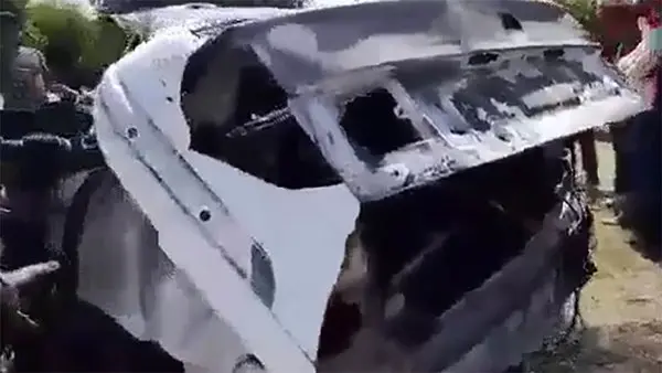 پرواز 60 متری سمند در میدان امام حسین جیرفت / چیزی از خودرو نماند +فیلم