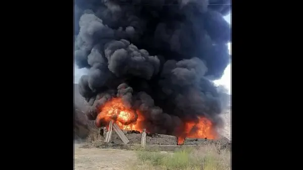 فیلم آتش سوزی وحشت آور استخر قیر در اردبیل