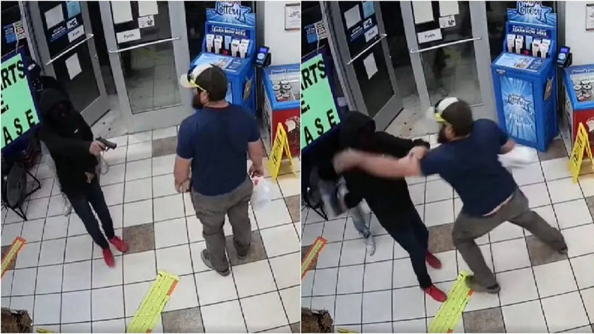 به گزارش رکنا، این نظامی کهنه کار با واکنشی دیدنی این سارقان مسلح را مجبور به فرار کرد. این اتفاق در ساعت ۴:۳۰ دقیقه صبح در فروشگاه پمپ بنزین چِورون در شهر «یوما» واقع در ایالت آریزونا آمریکا رخ داد.