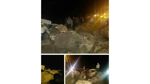 عکس عجیب از ریزش سنگ های بزرگ در جاده چالوس