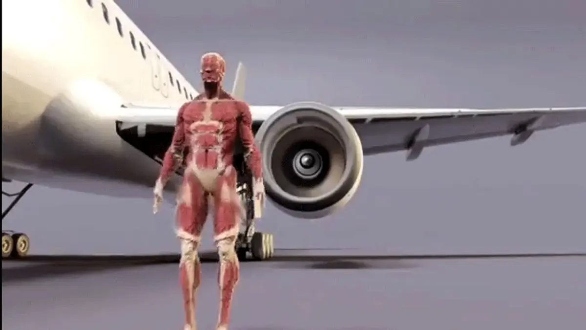 بلعیده و چرخ شدن انسان با ایستادن مقابل موتور هواپیما + فیلم