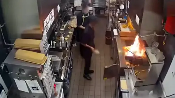 آتش گرفتن روغن در آشپزخانه یک رستوران و خاموش کردن آن با آب منجر به سوختن کل آشپزخانه و آشپزها شد.