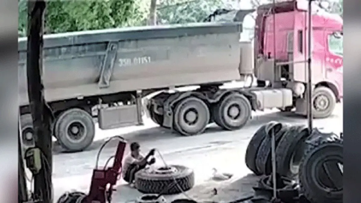 فیلم وحشتناک از انفجار لاستیک ! / مرد بیچاره له شد