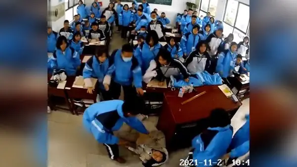 حوادث رکنا: دانشآموزان مدرسه ای در جنوب چین پس از غش کردن معلم باردار خود در کلاس به کمک او شتافتند.
