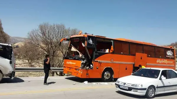 10 مجروح در تصادف تریلی و اتوبوس / در نطنز رخ داد + عکس