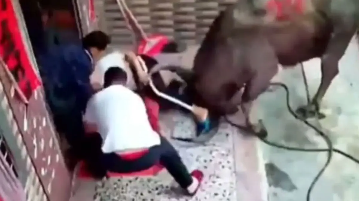 به گزارش رکنا، گاو خشمگین پس از وارد شدن به حیاط یک خانه، به زنی که فرزند کوچک خود را در آغوش گرفته بود، حمله کرد.
