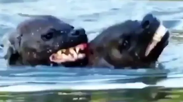 حوادث رکنا : 2 کفتار در رودخانه به جان هم افتادند.