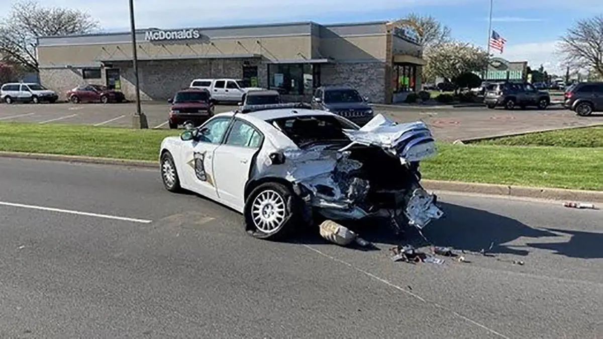 حوادث رکنا: یک خودرو با ماشین پلیسی که در کنار جاده توقف کرده بود، تصادف کرد.