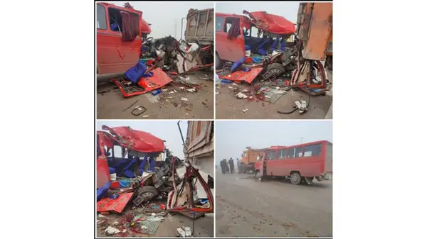 6 عکس از تصادف مرگبار مینی بوس دانش آموزان با کامیون / جزئیات کشته ها و زخمی ها