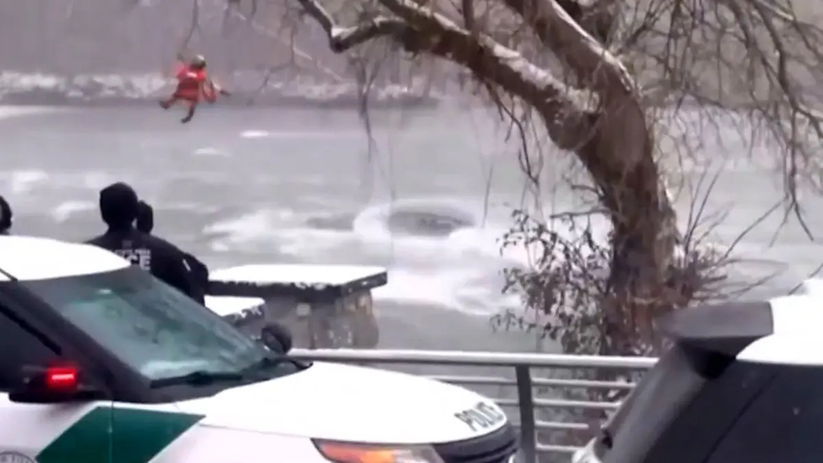 فیلم عملیات نفسگیر برای نجات یک زن در آبشار نیاگار / او داخل خودرویش خفه شد