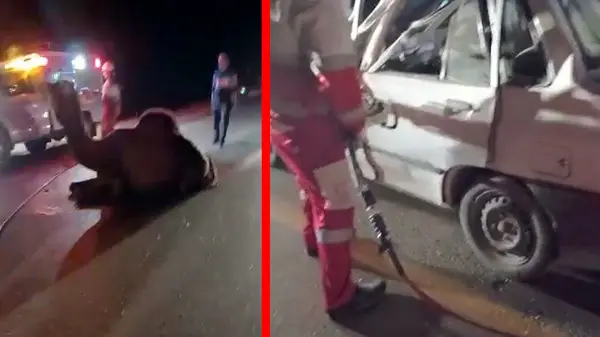 مجروحیت 4 زن و مرد بر اثر تصادف با شتر در گنبدکاووس + فیلم