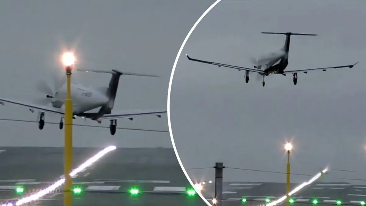 فرود پردردسر هواپیمای ملخی در باد شدید+ فیلم