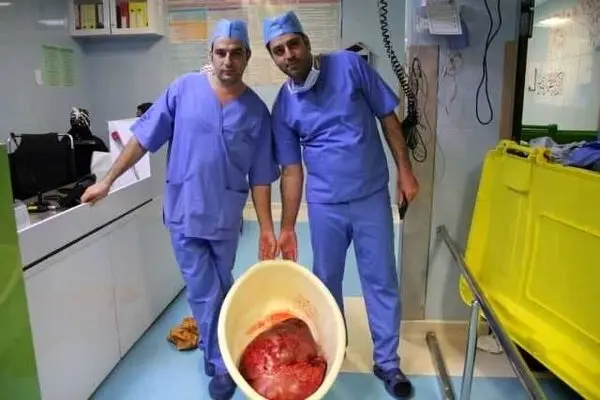 این جراح ادامه داد: در ابتدا فکر نمی‌کردیم این توده، وزنی معادل ۲۳ کیلوگرم داشته‌ باشد، لذا در حین عمل با سختی های فراوانی روبرو شدیم، چرا که توده به شدت به عروق درونی نزدیک بود و احتمال آسیب به عروق باعث شد تا عمل ۲ ساعت و ۱۵ دقیقه زمان ببرد و پس از خروج آن و وزن کردن، تمامی کادر اتاق عمل در بهت و حیرت فرو رفتند.