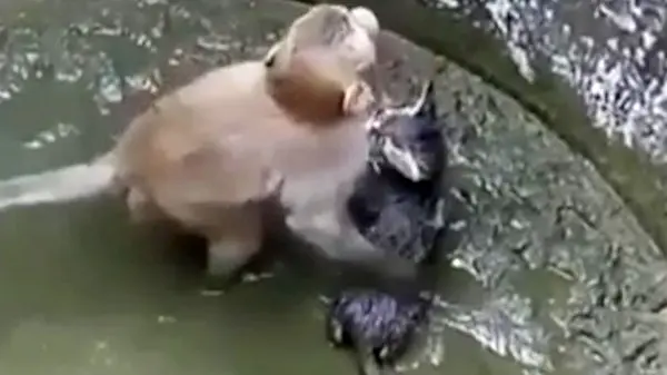 فیلم باورنکردنی از تلاش یک میمون برای نجات گربه گرفتار در چاه