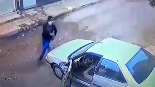 در این صحنه که مشاهده می کنید صاحب خودرو پس از درگیری در داخل خودرو موفق می شود سارق را از خودرویش بیرون بکشد و مانع سرقت خودرویش شود.