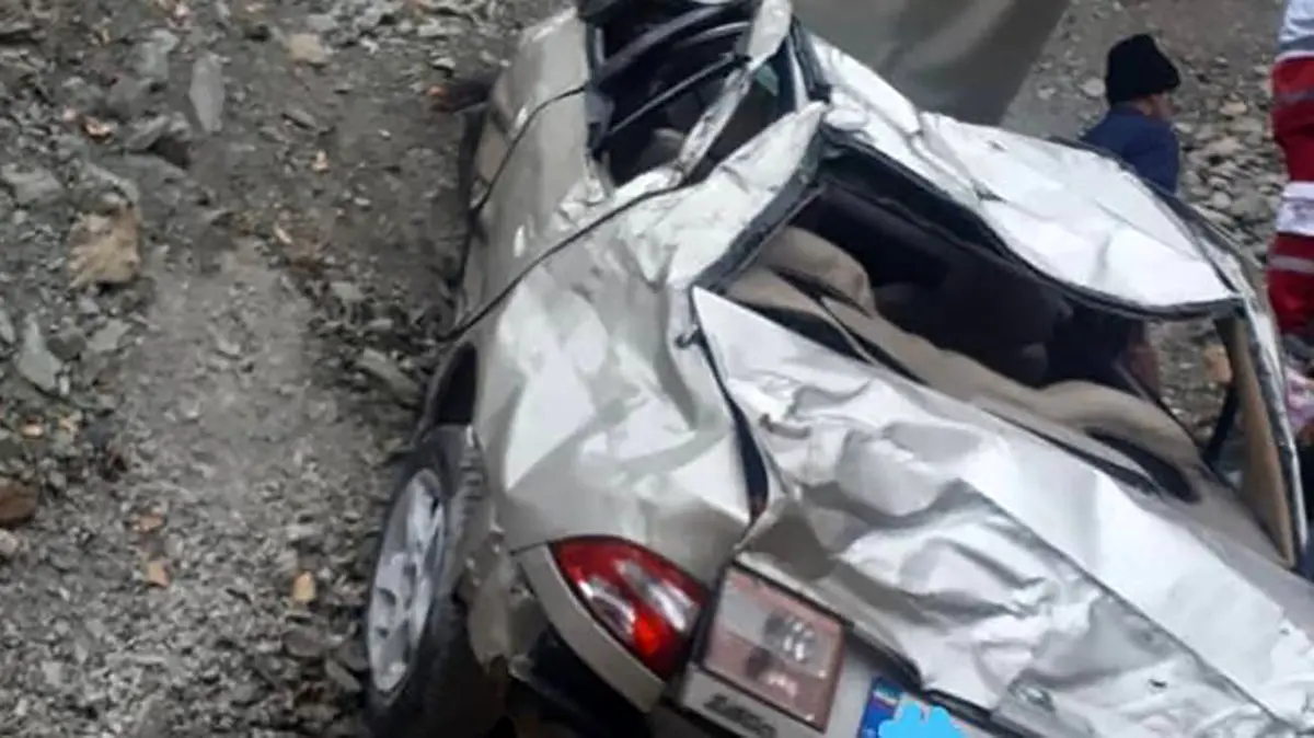 حوادث رکنا: ۵ سرنشین خودروی سمند بعد از واژگونی و سقوط به دره به طور معجزهاسای نجات یافتند.