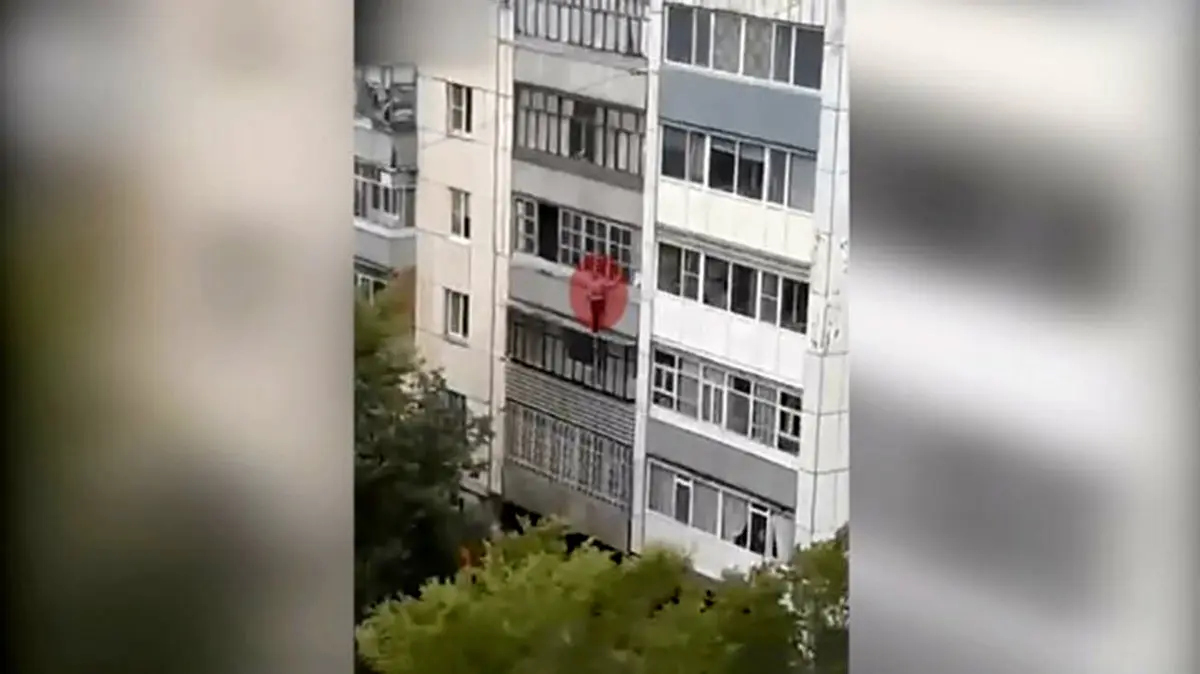 فیلم صحنه هولناک سقوط یک زن از پنجره خانه اش / او پشت در گیر کرده بود