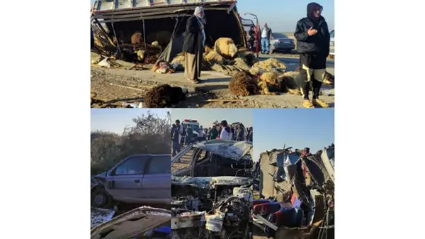 به گزارش رکنا، او افزود: در این حادثه ۳خاور با بار گوسفند با خودروهای رانا، پژو، پراید برخورد کرده که کامیون واژگون شده و تاکنون ۹ جسد با کمک فوریت‌های پزشکی به سردخانه انتقال داده شده است و  و ۵ نفر دیگر مصدوم شدند.
