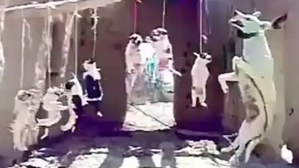 این فرد بی رحم 7 توله سگ و مادرشان را با طناب آویزان کرده تا جان دهند.