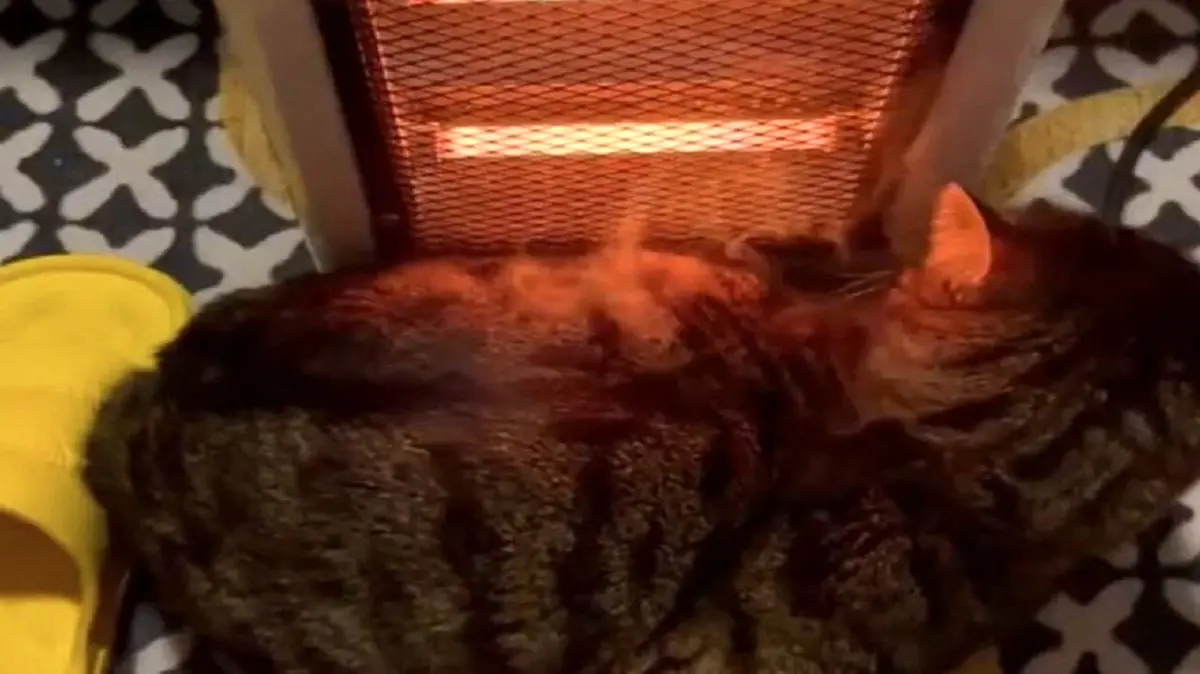 گربه‌ای که به دلیل سرما در کنار بخاری قرار گرفته بود، به دلیل نزدیک بودن بیش از اندازه به بخاری دچار سوختگی شد.