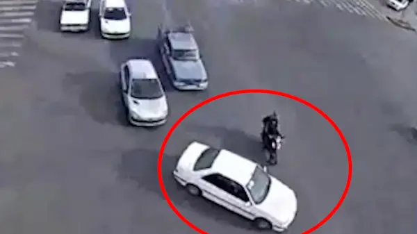 فیلم تصادف عجیب پژو پارس با موتورسیکلت وسط چهارراه