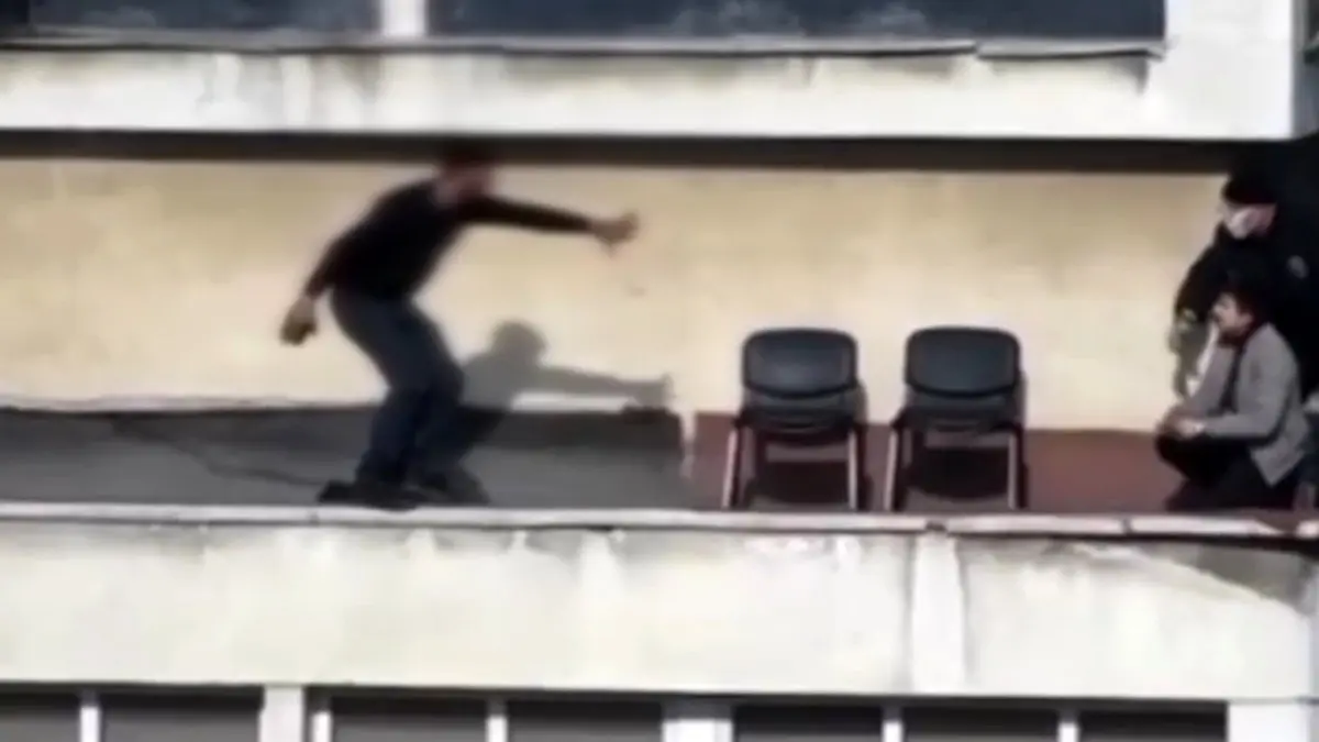 فیلم لحظه خودکشی مرد جوان از روی پشت بام
