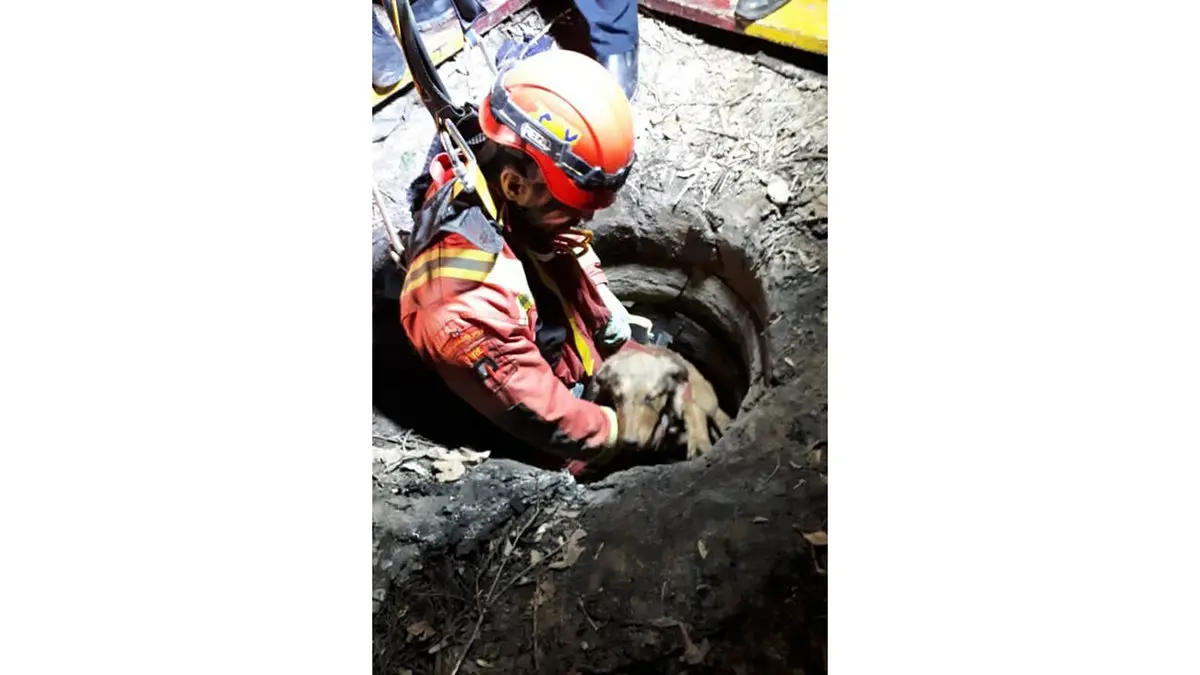سقوط یک سگ در چاه ۲۵ متری / آتش نشان های شهر ری سگ را نجات دادند