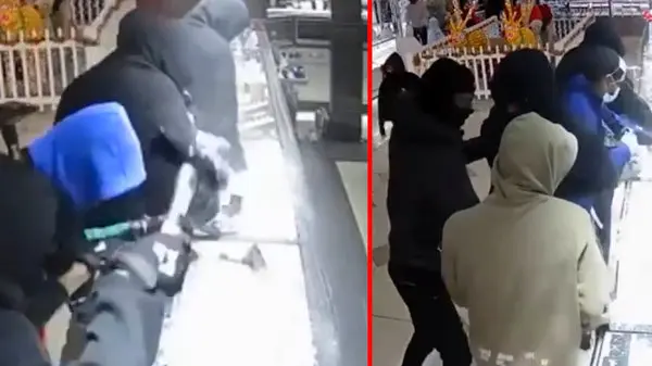 فیلم حمله دسته جمعی دزدان به مغازه طلافروشی / سارقان چکش به دست