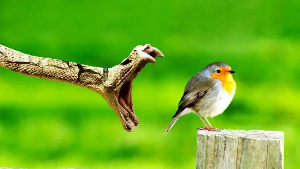 در فیلم زیر، لحظه درگیری پرنده و مار و همچنین شکار پرنده توسط این مار را مشاهده می‌کنید.