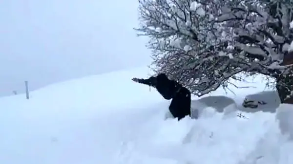 فیلم شیرجه زدن  هیجان انگیز یک مرد در برف سنگین