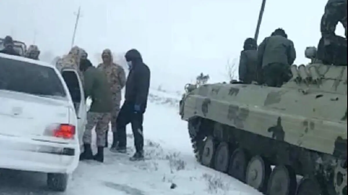 حوادث رکنا: از تانک ارتش برای کمک به همدانی های گیرافتاده در برف استفاده کردند.